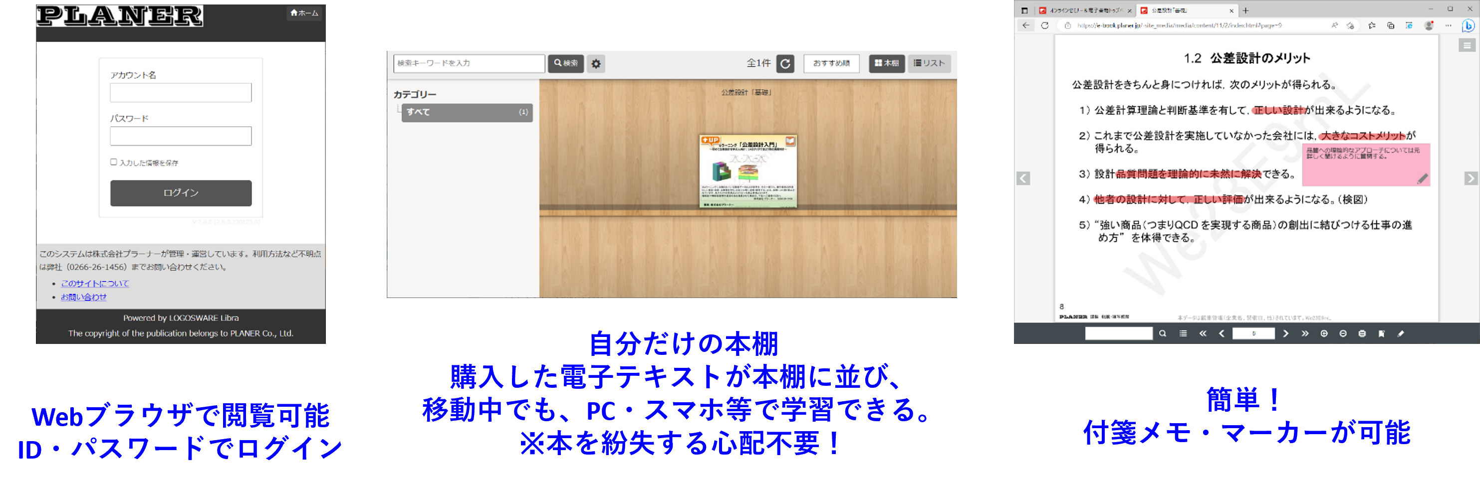 ご自身の電子テキストには、講師の説明等を付箋でメモをしたり、ペンで印をつけることも可能です。